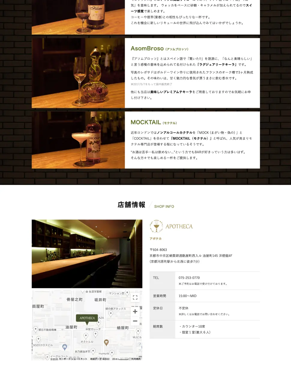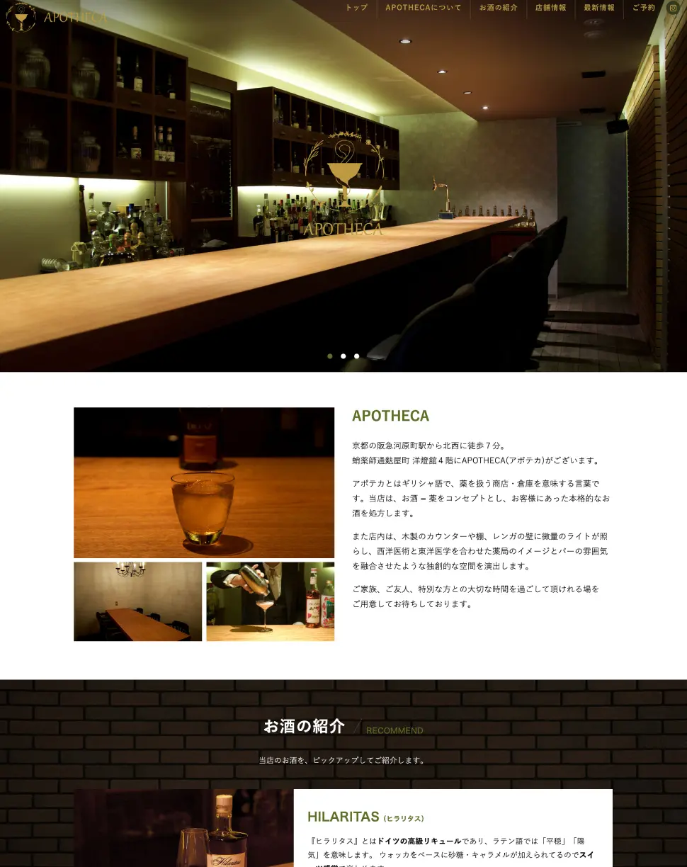 京都のバー「アポテカ」様のwebサイト制作を担当させて頂きました。