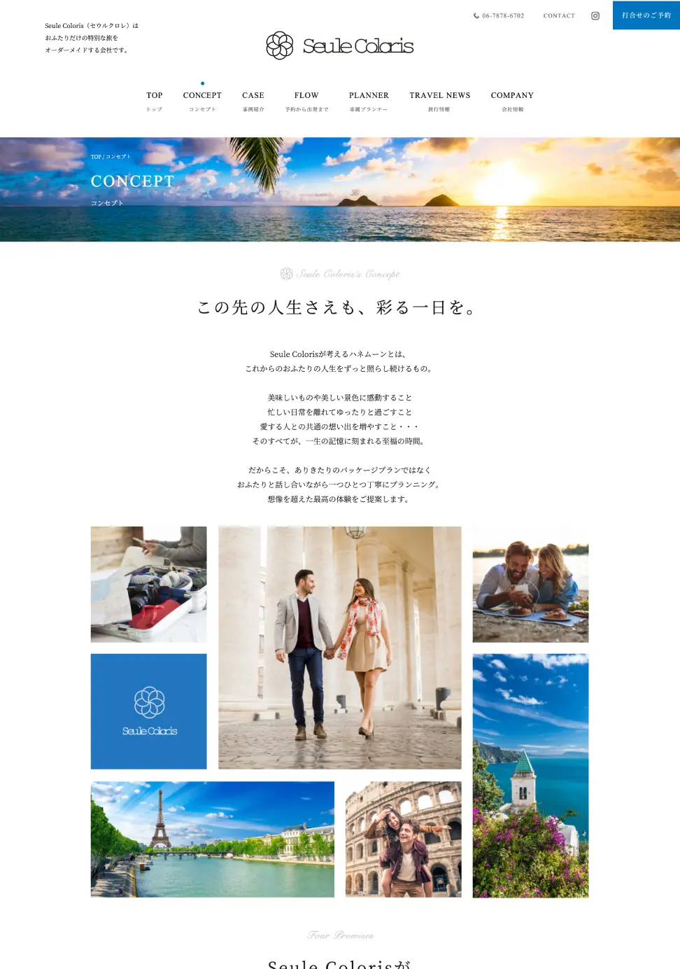 オーダーメイドハネムーン会社「セウルクロレ」様の予約用webサイトの制作をさせて頂きました。