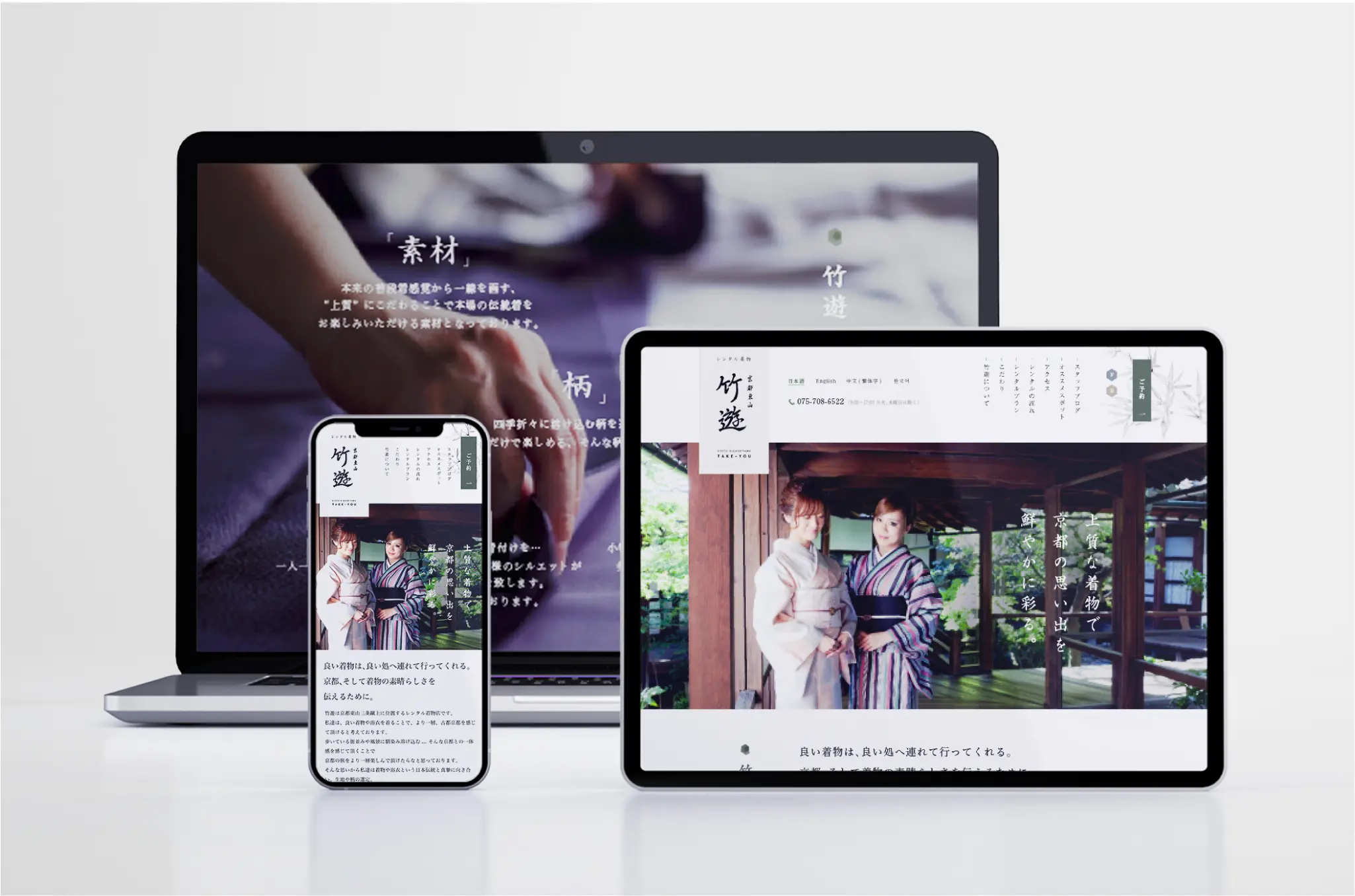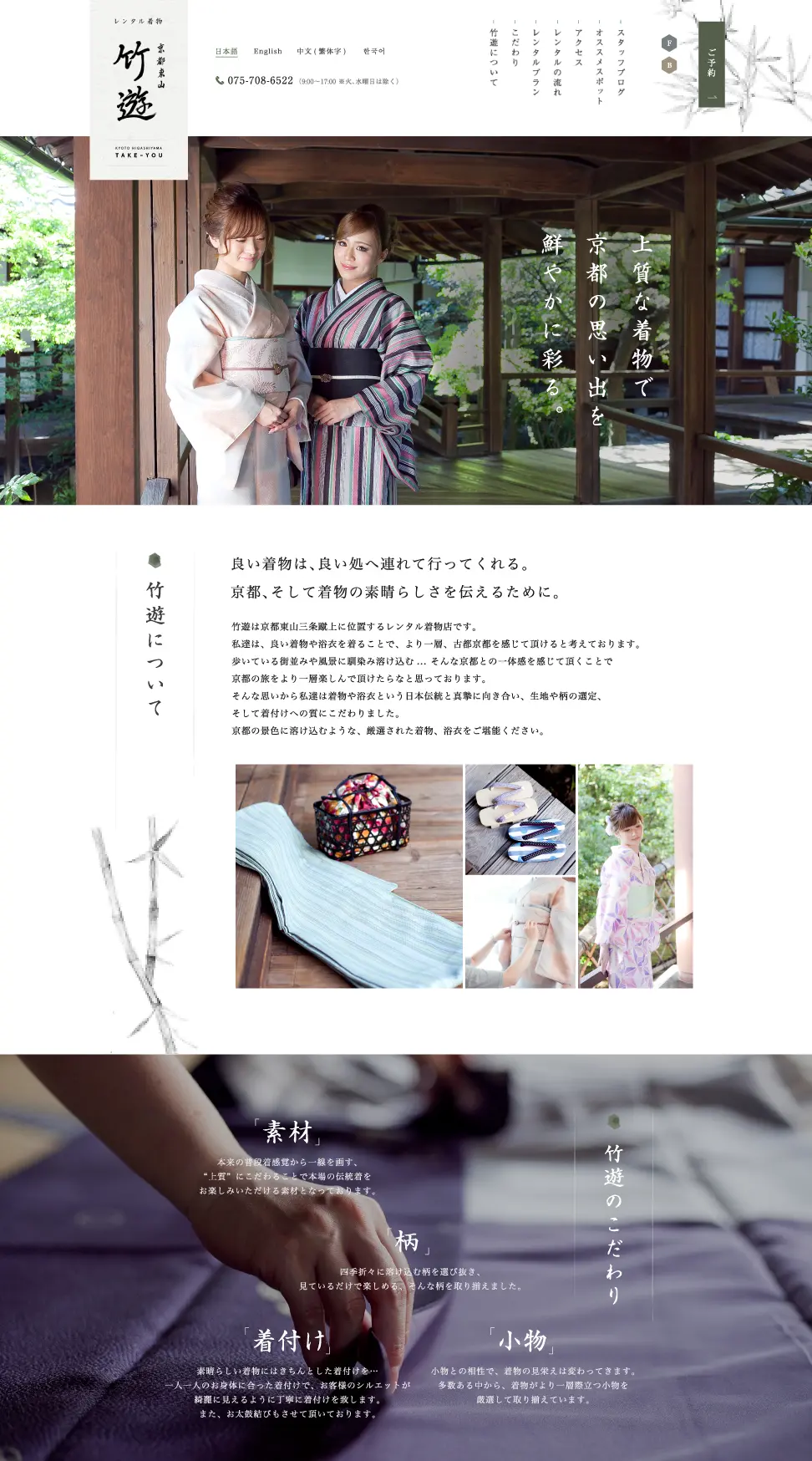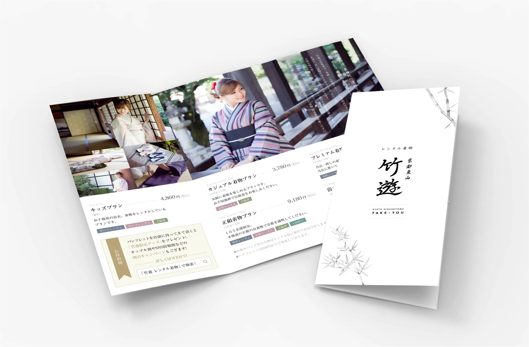 京都のレンタル着物「竹遊」様の集客用webサイトとパンフレットを制作いたしました。